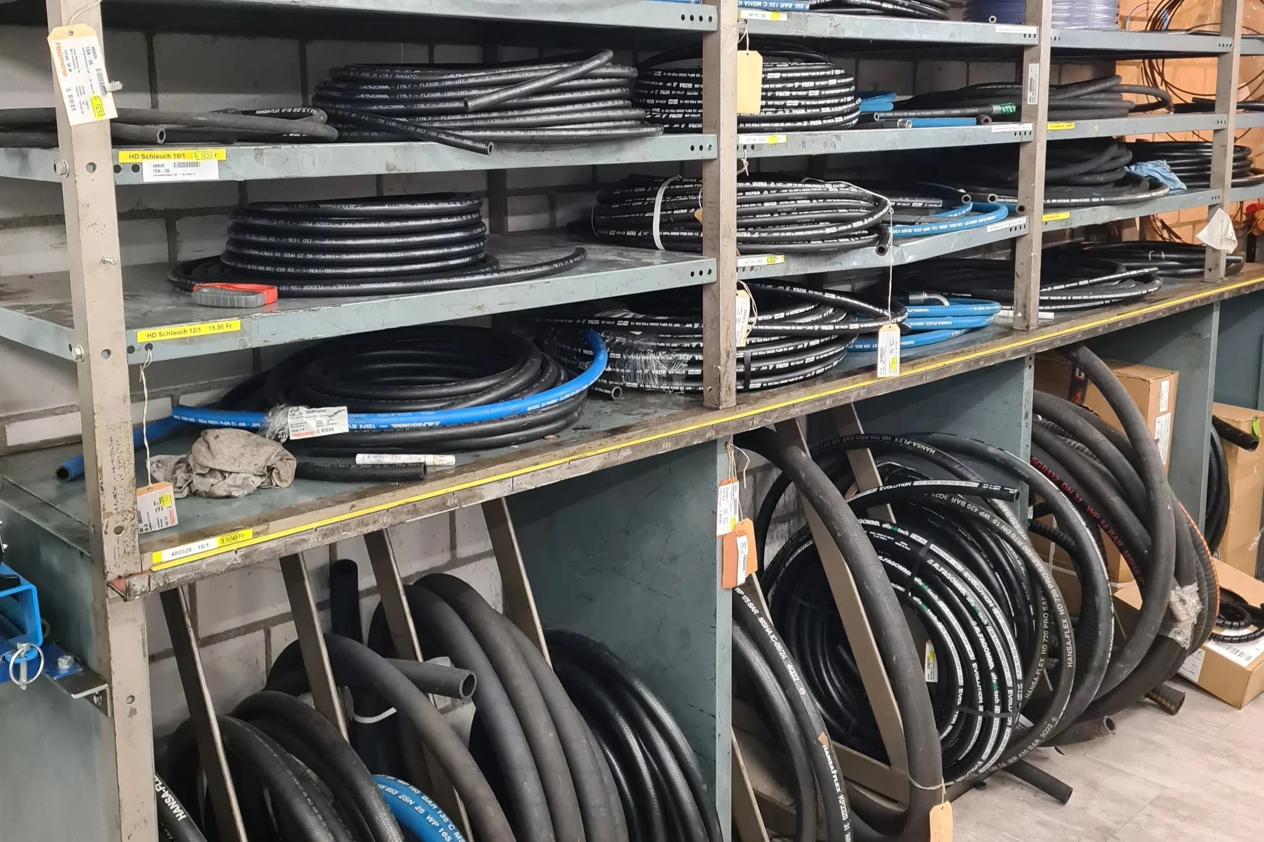 Wir fertigen Hydraulikschläuche von Ø 6–40 mm individuell nach Mass. Zudem führen wir Hydraulikleitungen in verschiedenen Grössen sowie ein grosses Lager an Kupplungen (z. B. Roflex, Faster) und diversen Verschraubungen.